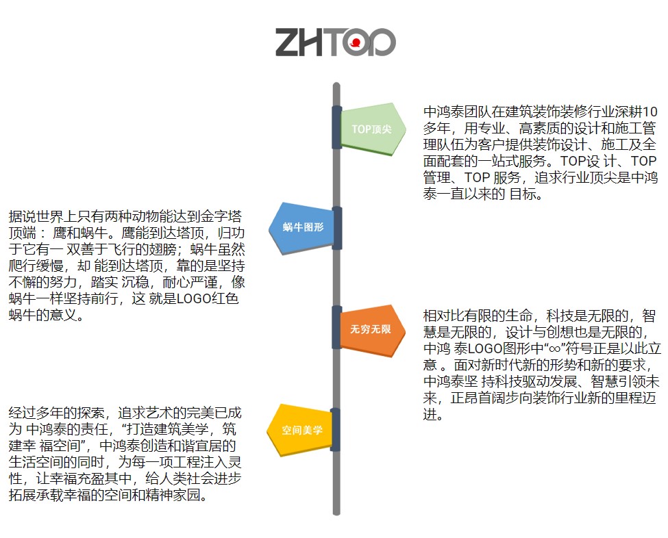 中鸿泰坚信品牌是人们对企业的一种综合评价和认知,在公司发展的过程当中,中鸿泰每一个项目都是在塑造品牌,每一次合作都是在拓展品牌,我们希望与其他装饰公司区分开来,树立自己的风格,在行业中建立起自己的知名度,打造出自己的品牌地位。未来,中鸿泰人将以更加饱满的热情、更加积极的态度、更加专业的技术,为客户提供更加优质的服务!